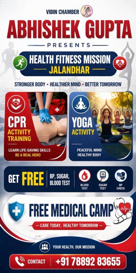 हेल्थ फिटनेस मिशन का आयोजन जालंधर में अभिषेक गुप्ता द्वारा करवाया जा रहा है।