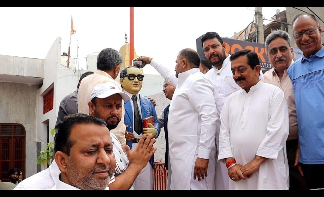 *कैप्शन-बाबा साहिब अंबेडकर जी की प्रतिमा को दूध से स्नान करवाते सुशील रिंकू उनके साथ सुशील शर्मा,राकेश राठौड़,मनोरंजन कालिया व अन्य*