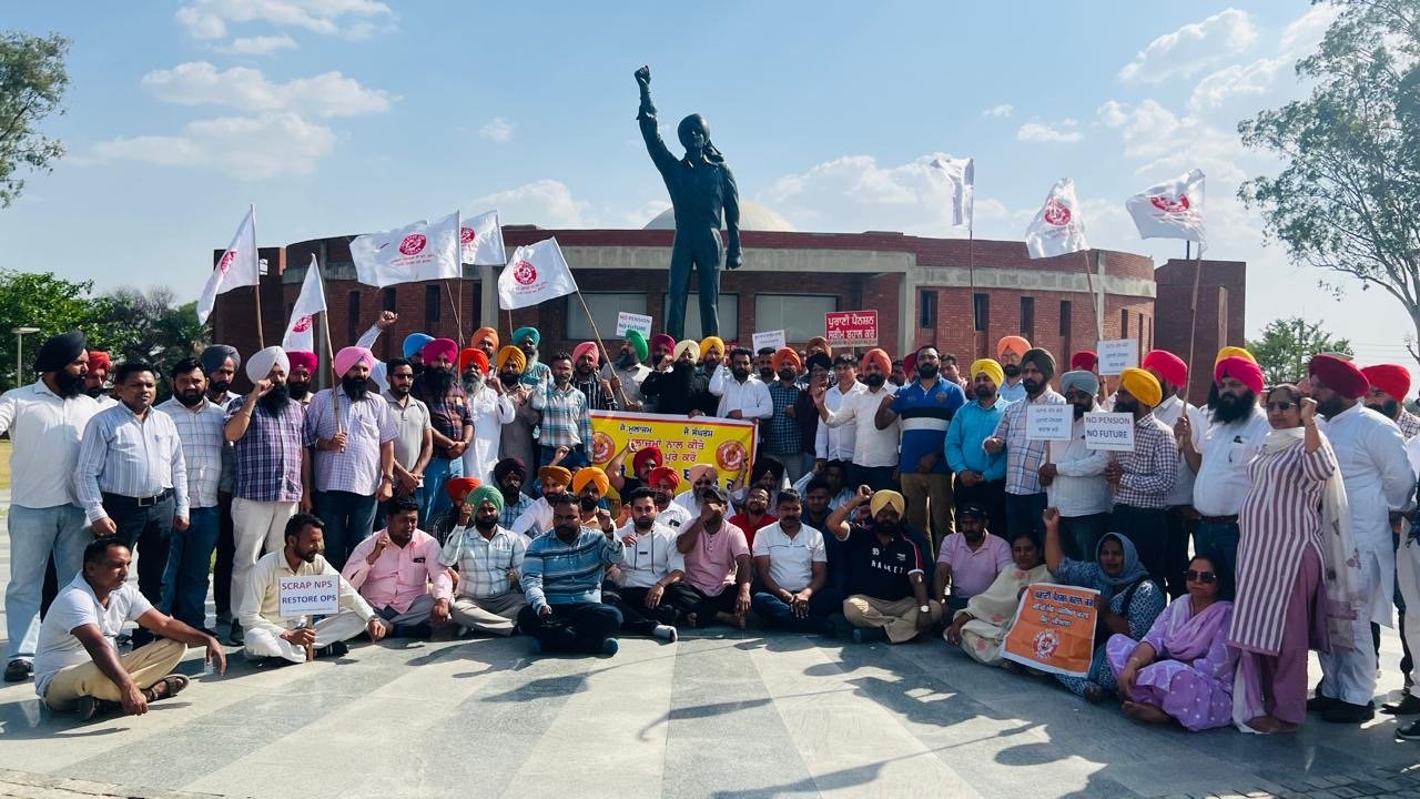 ਸ਼ਹੀਦ ਭਗਤ ਸਿੰਘ ਨਗਰ/ਖਟਕੜ ਕਲਾਂ (ਵਿਕਰਾਂਤ ਮਦਾਨ) : ਸ਼ਹੀਦ ਭਗਤ ਸਿੰਘ ਦੇ ਜਨਮ ਸਥਾਨ ਖਟਕੜ ਕਲਾਂ ਵਿਖੇ ਸੀਪੀਐਫ ਕਰਮਚਾਰੀ ਯੂਨੀਅਨ ਦੀ ਅਗਵਾਈ ਹੇਠ ਕਰਮਚਾਰੀਆਂ ਵੱਲੋਂ ਪੁਰਾਣੀ ਪੈਨਸ਼ਨ ਬਹਾਲੀ ਦੀ ਮੰਗ ਲਈ ਇੱਕ ਦਿਨਾਂ ਭੁੱਖ ਹੜਤਾਲ ਕੀਤੀ ਗਈ। ਇਸ ਦੌਰਾਨ ਕਰਮਚਾਰੀਆਂ ਨੇ ਭਗਵੰਤ ਸਿੰਘ ਮਾਨ ਦੀ ਸਰਕਾਰ ਵੱਲੋਂ ਸ਼ਹੀਦ ਭਗਤ ਸਿੰਘ ਦੀ ਸਹੁੰ ਚੁੱਕ ਕੇ ਸੱਤਾ ‘ਚ ਆਉਣ ਉਪਰੰਤ ਆਪਣੇ ਵਾਅਦੇ ਤੋਂ ਮੁੱਕਰਨ ਦੇ ਦੋਸ਼ ਲਗਾਏ ਗਏ।