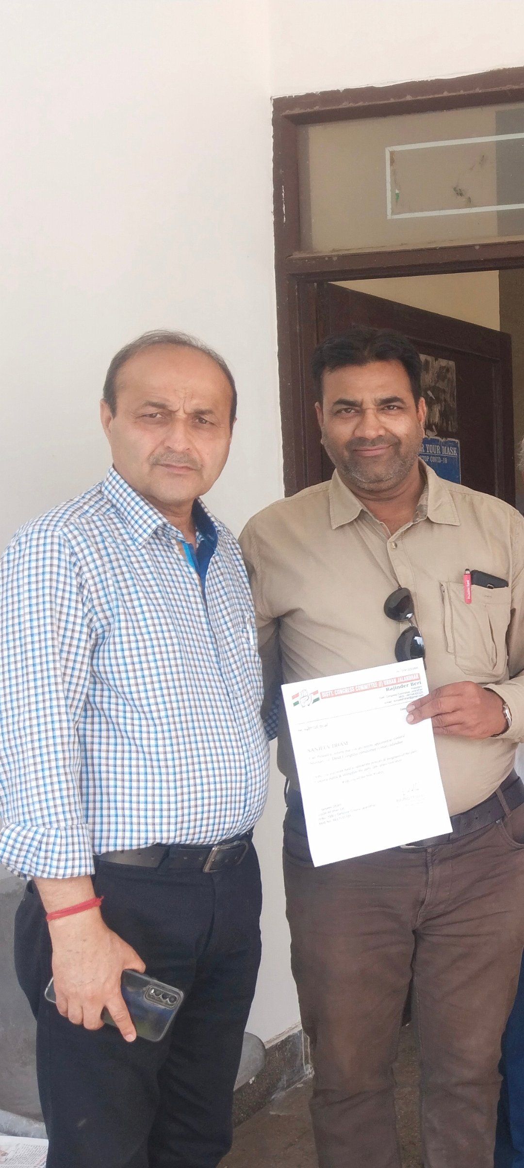 ਜਲੰਧਰ (ਵਿਕਰਾਂਤ ਮਦਾਨ) 1 ਮਈ 24:-ਅੱਜ ਕਾਂਗਰਸ ਭਵਨ ਵਿੱਖੇ ਜਿਲ੍ਹਾ ਪ੍ਰਧਾਨ ਰਜਿੰਦਰ ਬੇਰੀ ਅਤੇ ਸਾਬਕਾ ਜਿਲਾ.ਪ੍ਰਧਾਨ ਬਲਰਾਜ ਠਾਕੁਰ ਨੇ, ਸੰਜੀਵ ਧਾਮ ਜਨਰਲ ਸਕੱਤਰ ਡੀ.ਸੀ.ਸੀ ਸ਼ਹਿਰੀ ਵਾਜੋ ਨਿਯੁਕਤ ਕਰਦੈ ਹੋਇ ਵਧਾਇ ਦਿੱਤੀ ਅਤੇ ਮੂੰਹ ਮਿਠਾ ਕਰੌਂਦੇ ਪੱਤਰ ਦਿੱਤਾ....