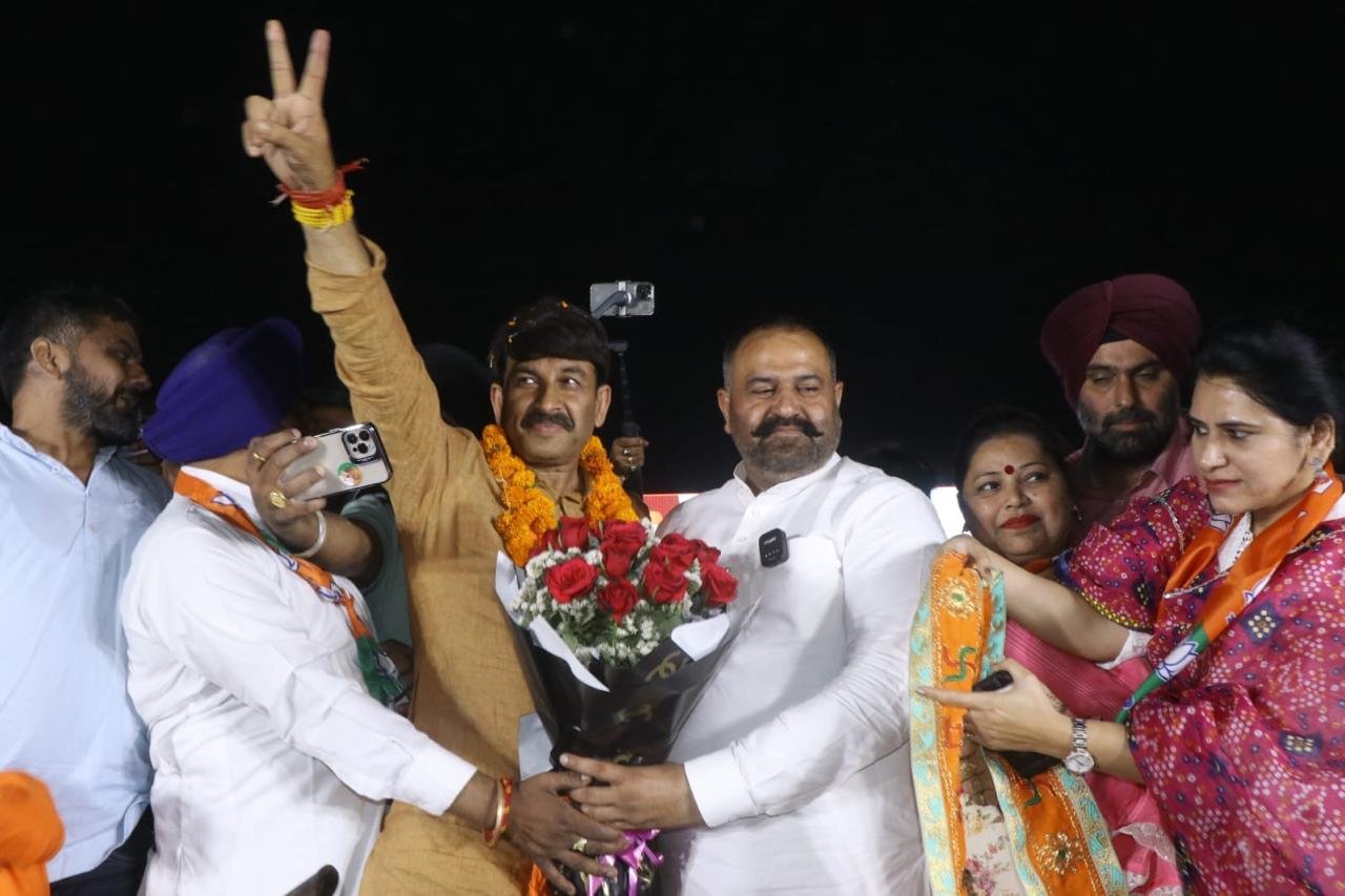 प्रख्यात फिल्म स्टार मनोज तिवाड़ी ने पार्टी उम्मीदवार सुशील रिंकू के समर्थन में की रैली