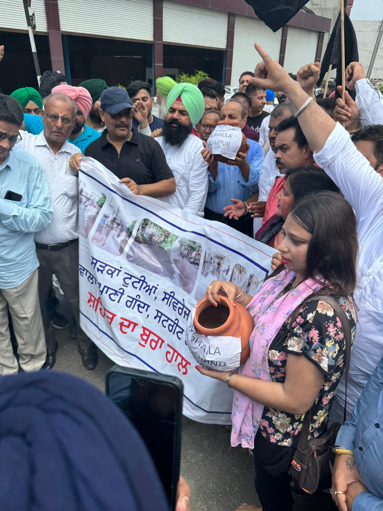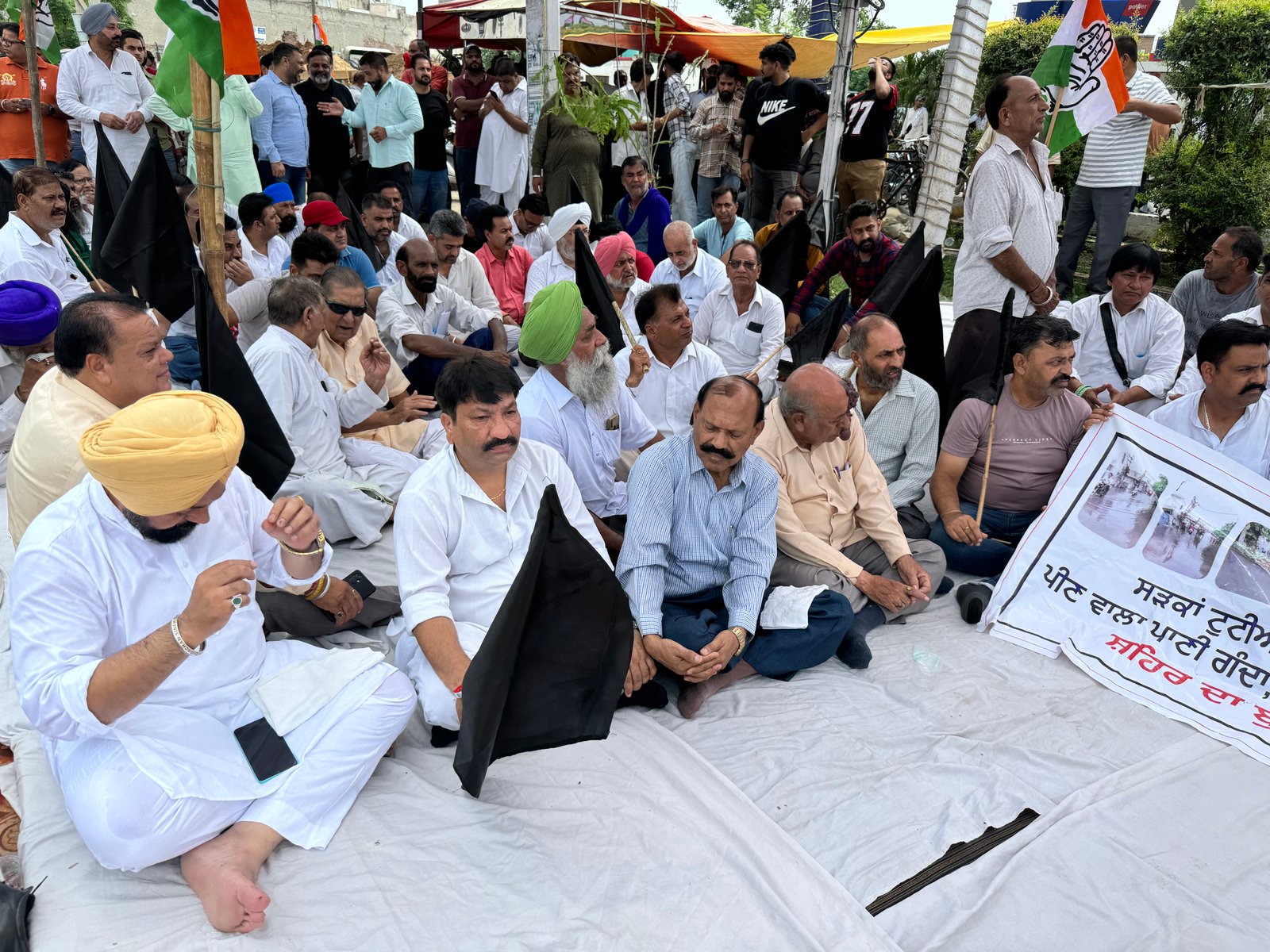 ਜਿਲਾ ਕਾਂਗਰਸ ਨੇ ਲੋਕਲ ਬਾਡੀ ਮੰਤਰੀ ਬਲਕਾਰ ਸਿੰਘ ਦੇ ਘਰ ਦੇ ਬਾਹਰ ਦਿੱਤਾ ਧਰਨਾ ।