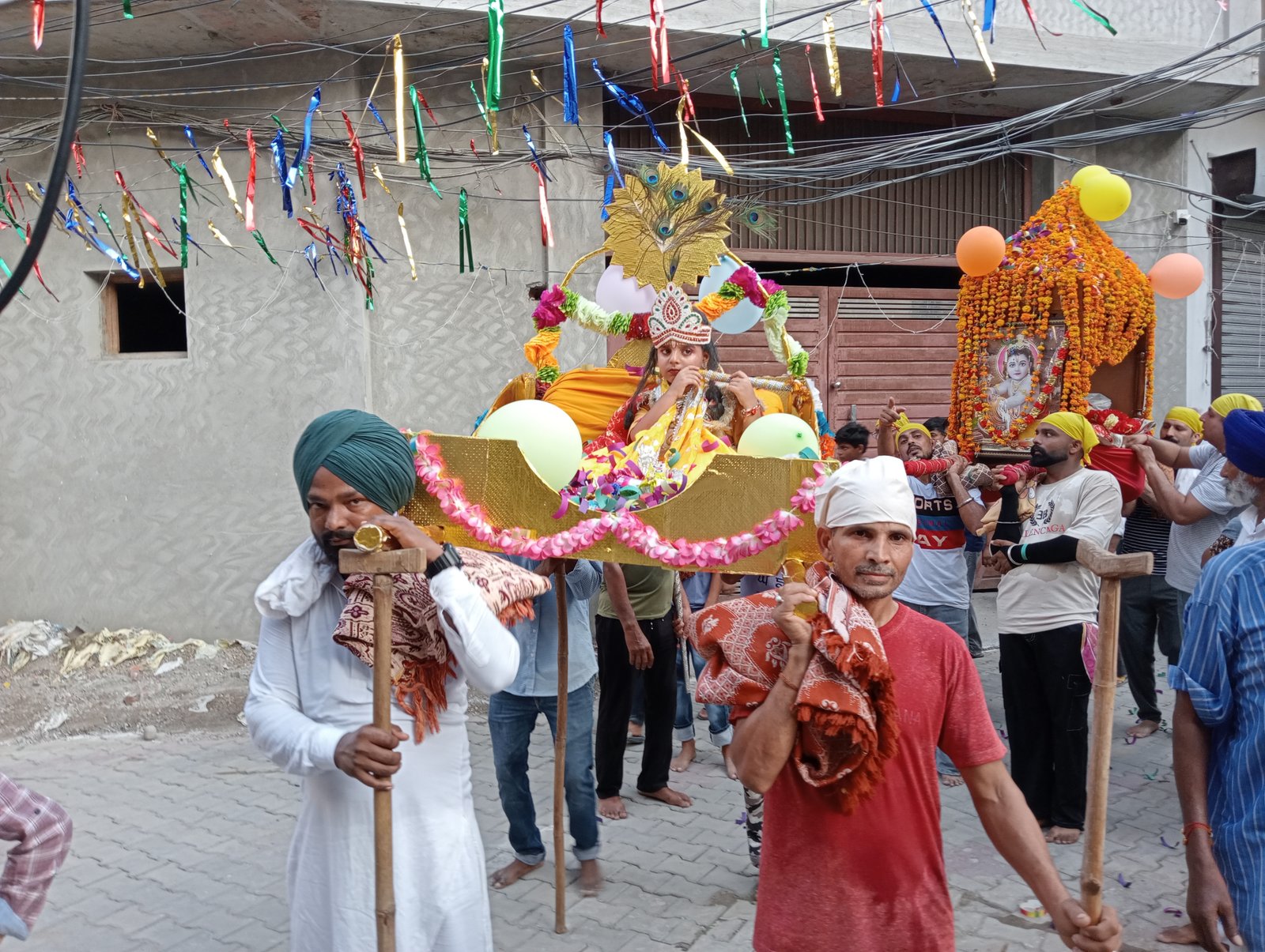ਜਲੰਧਰ (ਜੀ ਐਸ ਕਾਹਲੋ) ਕਸਬਾ ਜਮਸ਼ੇਰ ਖਾਸ ਵਿੱਚ ਹਰ ਸਾਲ ਦੀ ਤਰ੍ਹਾਂ ਮੰਦਰ ਠਾਕੁਰ ਦੁਆਰਾ ਵੱਲੋਂ ਮੁੱਖ ਸੇਵਾਦਾਰ ਮਹੰਤ ਸ੍ਰੀ ਭਰਤਦਾਸ ਜੀ ਦੀ ਅਗਵਾਈ ਵਿੱਚ ਜਨਮ ਅਸ਼ਟਮੀ ਦੇ ਸਬੰਧ ਵਿੱਚ ਕ੍ਰਿਸ਼ਨ ਮਹਾਰਾਜ ਜੀ ਦੀ ਸ਼ੋਭਾ ਯਾਤਰਾ ਕੱਢੀ ਗਈ। ਸੋਭਾ ਯਾਤਰਾ ਕੱਢਣ ਵੇਲੇ ਸੰਗਤਾਂ ਨੇ ਸ੍ਰੀ ਕ੍ਰਿਸ਼ਨ ਮਹਾਰਾਜ ਜੀ ਦਾ ਗੁਣਗਾਨ ਕੀਤਾ। ਮਹੰਤ ਸ੍ਰੀ ਭਰਤਦਾਸ ਜੀ ਨੇ ਦੱਸਿਆ ਕਿ 26 ਤਰੀਕ ਦਿਨ ਸੋਮਵਾਰ ਨੂੰ ਰਾਤ ਵੇਲੇ ਕ੍ਰਿਸ਼ਨ ਮਹਾਰਾਜ ਜੀ ਦਾ ਜਨਮ ਦਿਨ ਬੜੀ ਧੂਮ ਧਾਮ ਨਾਲ ਮਨਾਇਆ ਜਾਵੇਗਾ।