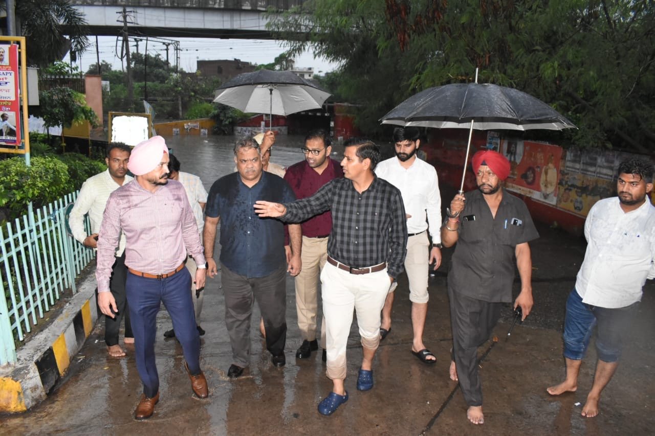 डीसी हिमांशु अग्रवाल ने भारी बारिश के बीच जलजमाव की स्थिति का निरीक्षण किया, नगर निगम के फील्ड स्टाफ से बातचीत की।