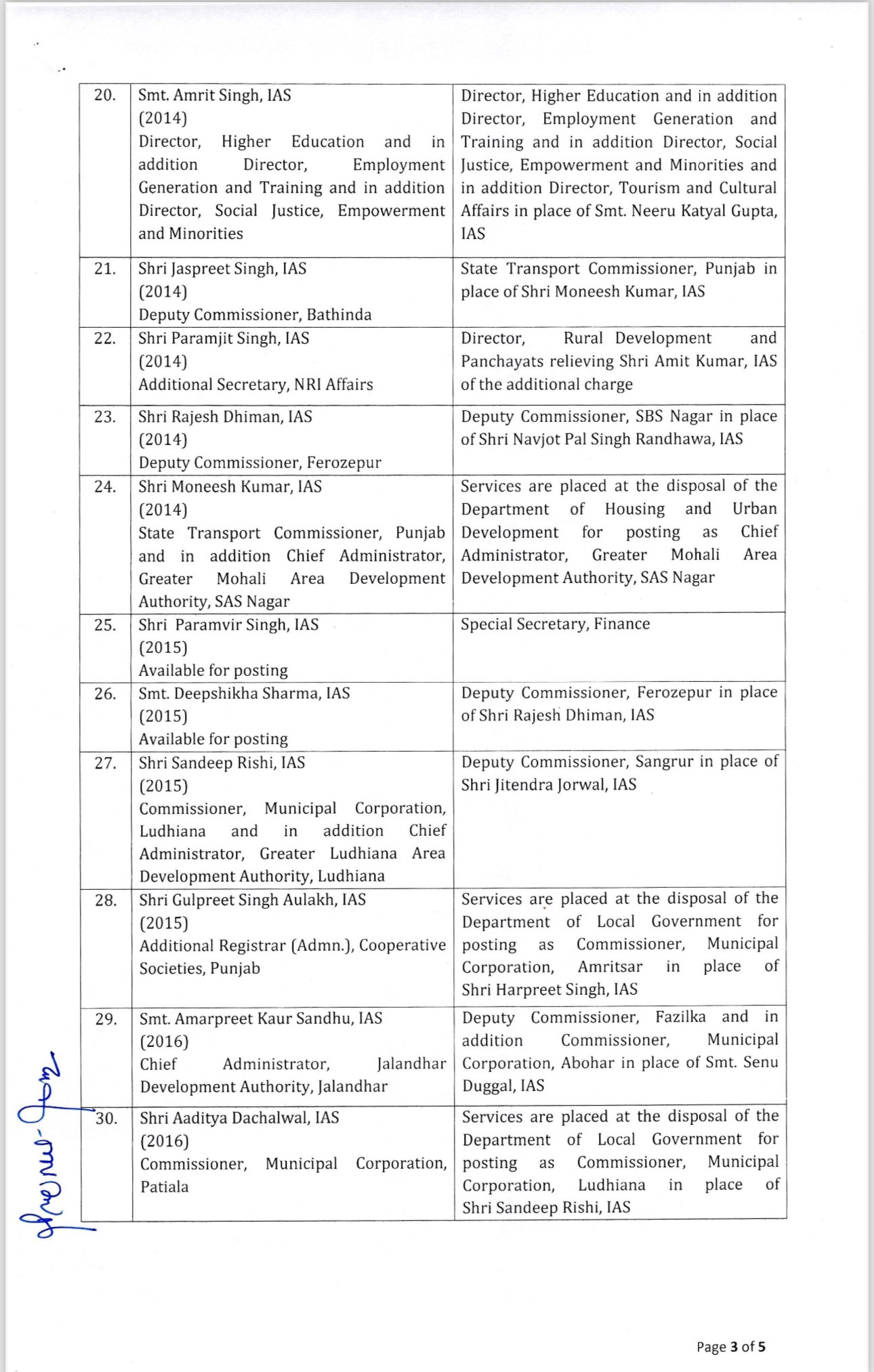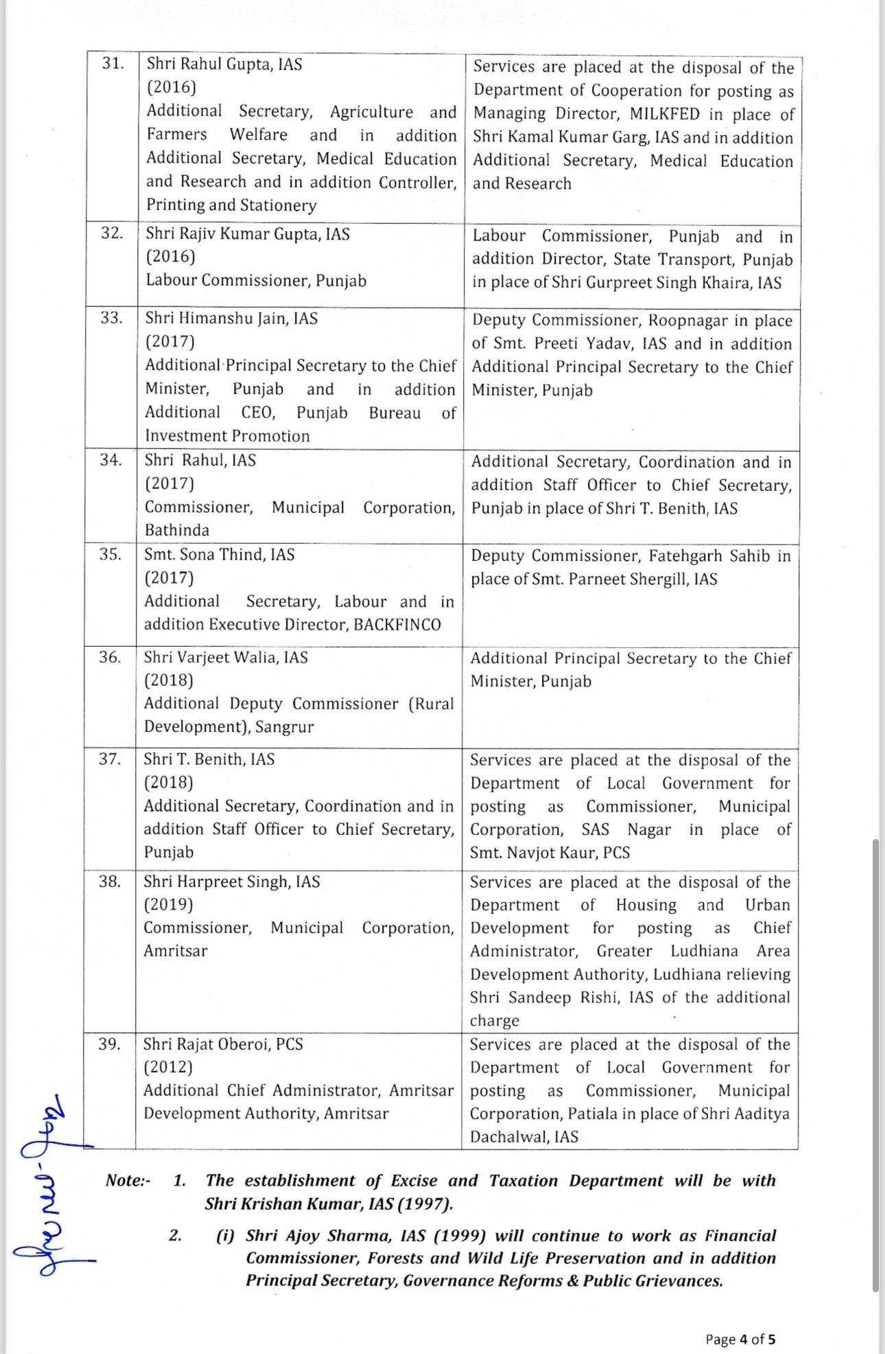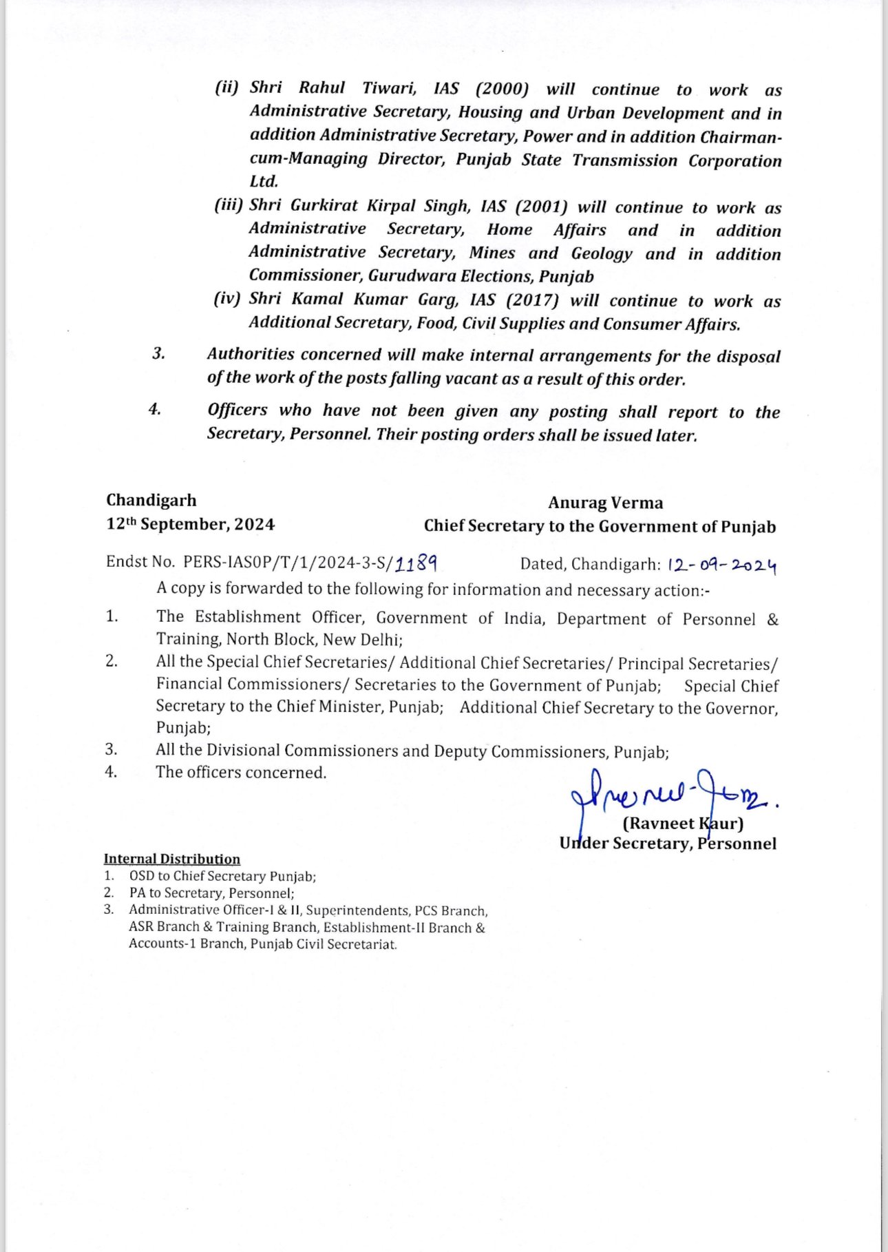 ਚੰਡੀਗੜ/ਜਲੰਧਰ ਅੱਜ ਮਿਤੀ ਸਿਤੰਬਰ (ਸੋਨੂੰ ਬਾਈ) : ਪੰਜਾਬ ਸਰਕਾਰ ਦੇ ਪ੍ਰਸ਼ਾਸਨ ਵਿੱਚ ਹੋਇਆ ਬਡਾ ਫੇਰ ਬਦਲ, ਆ.ਏ.ਐਸ. ਅਧਕਾਰੀਆਂ ਦੇ ਵਿਭਾਗਾਂ ਹੋਇਆਂ ਫੇਰ ਬਦਲ। ਪੰਜਾਬ ਸਰਕਾਰ ਦੇ ਮੁੱਖ ਸਕੱਤਰ ਨੇ ਜਾਰੀ ਕੀਤੀ ਲਿਸਟ।