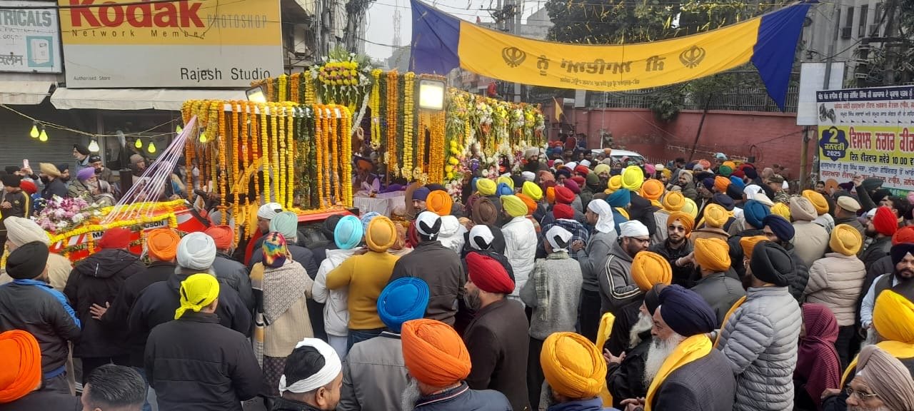 ਜਲੰਧਰ ਅੱਜ ਮਿਤੀ 02 ਜਨਵਰੀ (ਸੋਨੂੰ ਬਾਈ) : ਦਸਮ ਪਿਤਾ ਸ੍ਰੀ ਗੁਰੂ ਗੋਬਿੰਦ ਸਿੰਘ ਜੀ ਮਹਾਰਾਜ ਦੇ ਪ੍ਰਕਾਸ਼ ਪੁਰਬ ਨੂੰ ਸਮਰਪਿਤ ਸਜਾਏ ਗਏ ਨਗਰ ਕੀਰਤਨ ਦੌਰਾਨ ਧੰਨ ਧੰਨ ਸ੍ਰੀ ਗੁਰੂ ਗ੍ਰੰਥ ਸਾਹਿਬ ਜੀ ਅਤੇ ਨਗਰ ਕੀਰਤਨ ਮੌਕੇ ਸ਼ਾਮਿਲ ਸੰਗਤਾਂ ਦਾ ਫੁੱਲਾਂ ਦੀ ਵਰਖਾ ਕਰਦਿਆਂ ਜ਼ਿਲ੍ਹਾ ਅਕਾਲੀ ਦਲ ਦੇ ਆਗੂਆਂ ਵਲੋਂ ਜਥੇਦਾਰ ਕੁਲਵੰਤ ਸਿੰਘ ਮੰਨਣ ਪ੍ਰਧਾਨ ਜ਼ਿਲ੍ਹਾ ਅਕਾਲੀ ਦਲ, ਮੁੱਖ ਸਕੱਤਰ ਸ਼੍ਰੋਮਣੀ ਗੁਰਦੁਆਰਾ ਪ੍ਰਬੰਧਕ ਕਮੇਟੀ ਅੰਮ੍ਰਿਤਸਰ ਦੀ ਅਗਵਾਈ ਹੇਠ ਨਿੱਘਾ ਸਵਾਗਤ ਕੀਤਾ ਗਿਆ ਅਤੇ ਪੰਜ ਪਿਆਰੇ ਸਹਿਬਾਨ ਨੂੰ ਸਿਰੋਪਾਓ ਦੇ ਕੇ ਸਨਮਾਨਿਤ ਕੀਤਾ ਗਿਆ ਅਤੇ ਉਨ੍ਹਾਂ ਨੇ ਸਮੂਹ ਸੰਗਤਾਂ ਨੂੰ ਪ੍ਰਕਾਸ਼ ਪੁਰਬ ਦੀ ਵਧਾਈ ਦਿੱਤੀ । ਸਟੇਜ ਤੋਂ ਭਾਈ ਗੁਰਜੀਤ ਸਿੰਘ ਭੱਠਲ ਕਵੀਸ਼ਰ ਜਥਾ ਸ਼੍ਰੋਮਣੀ ਗੁਰਦੁਆਰਾ ਪ੍ਰਬੰਧਕ ਕਮੇਟੀ ਅੰਮ੍ਰਿਤਸਰ ਵਲੋਂ ਕਵਿਤਾਵਾਂ ਰਾਹੀਂ ਸੰਗਤਾਂ ਨੂੰ ਇਤਿਹਾਸ ਤੋਂ ਜਾਣੂ ਕਰਵਾਇਆ ਗਿਆ।ਇਸ ਮੌਕੇ ਜ਼ਿਲ੍ਹਾ ਅਕਾਲੀ ਦਲ ਵਲੋਂ ਗੁਰੂ ਇਤਿਹਾਸ ਦੀਆਂ ਕਿਤਾਬਾਂ ਦਾ ਸਟਾਲ ਅਤੇ ਗੁਰੂ ਕਾ ਲੰਗਰ ਅਤੁੱਟ ਵਰਤਾਇਆ ਗਿਆ।