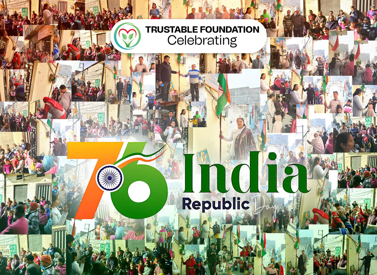 जालंधर आज तिथि 27 जनवरी (सोनू बाई) : कल 26 जनवरी को ज़तोषी नगर में ट्रस्टबल फाउंडेशन की तरफ से श्रीमति शालू ने झंडा लहरा कर गण तंत्र दिवस धूमधाम से मनाया | इस. कार्यक्रम में इलाका निवासिओं और खास तौर पर बच्चों ने बहुत उत्साह से भाग लिया | धवजरोहन के समय पे राष्ट्रीय गान गाया गया | और लड्डू बाँट कर खुशियाँ मनाई गई | बच्चों ने देश भक्ति का कार्यक्रम पेश किया |