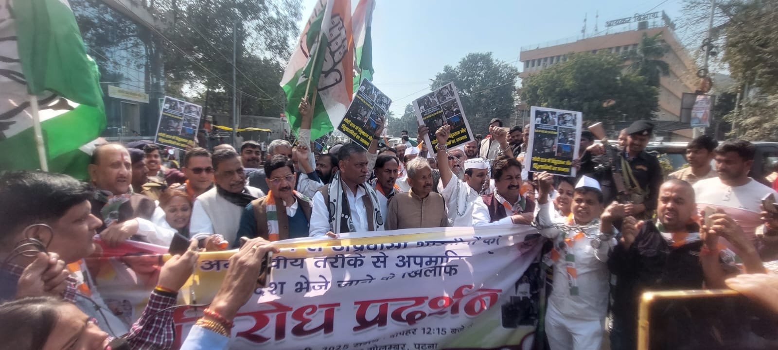 *पटना. रविवार, 9 फरवरी, 2025 (सोनू वाई) : अप्रवासी भारतीयों के साथ अमेरिकी सरकार के अमानवीय व्यवहार और उन्हें जबरन बेड़ियों में जकड़कर मालवाहक विमानों से भारत लाने की प्रक्रिया पर बिहार कांग्रेस के अध्यक्ष डॉ अखिलेश प्रसाद सिंह के नेतृत्व में इनकम टैक्स चौराहे पर कांग्रेसजनों ने केंद्र की मोदी सरकार के खिलाफ व्यापक विरोध प्रदर्शन और प्रधानमंत्री नरेंद्र मोदी और अमेरिकी राष्ट्रपति डोनाल्ड ट्रंप का पुतला दहन किया।