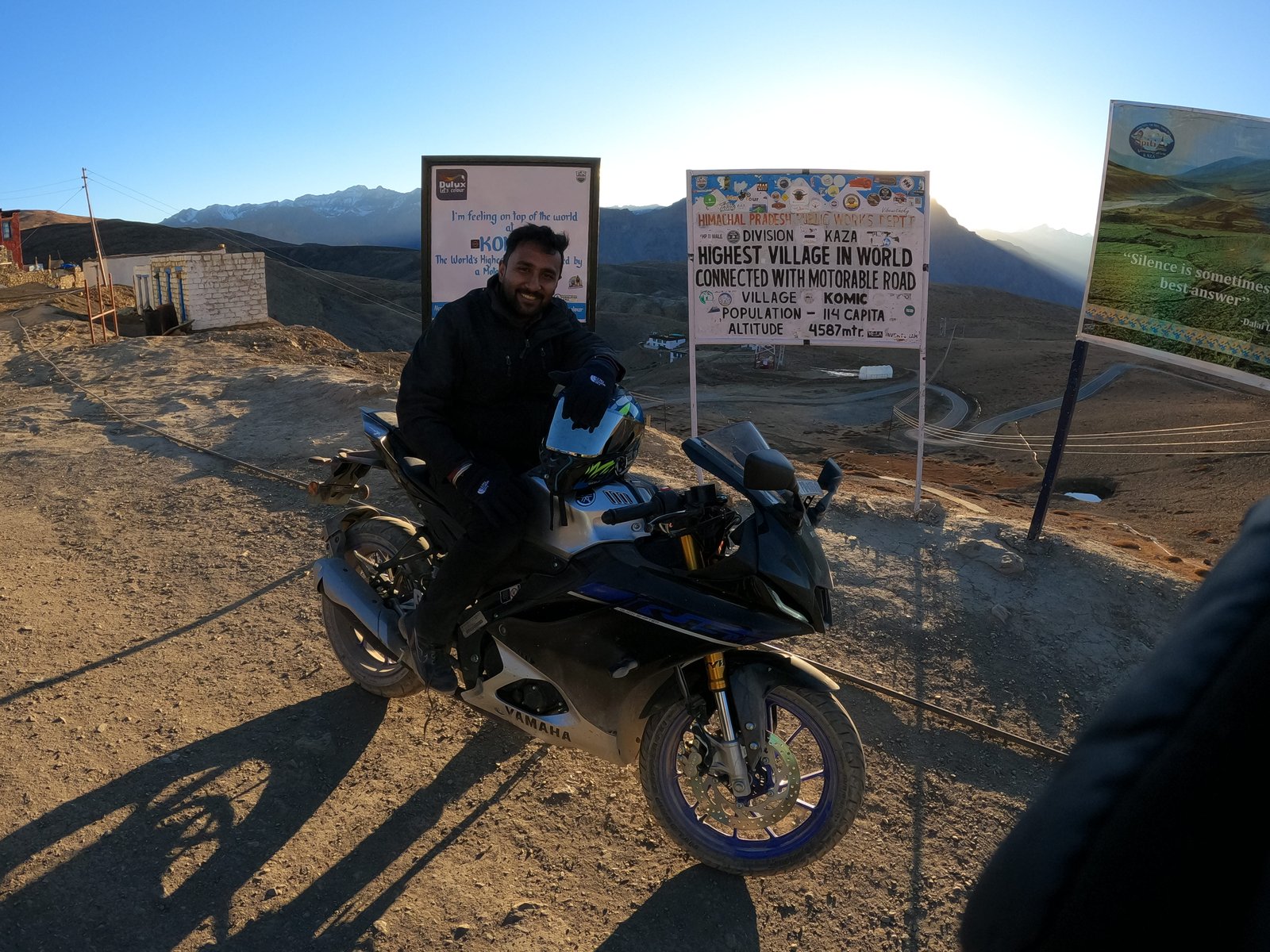 दुनिया की सबसे ऊंचाई वाली जगह हमारे भारत में ही है और यह स्पीति जो लेह लद्दाख के रास्ते में आता है स्पीति से कुछ किलोमीटर दूर यह जगह है जहां पर जाना कुछ लोगों के लिए संभव है कुछ लोग बड़ी आसानी से हो आते हैं। स्पीति से कुछ ही दूर पर 20 किलोमीटर दूरी पर एक दुनिया का सबसे ऊंचाई पर स्थित पोस्ट ऑफिस है जो की टूरिस्ट के लिए बहुत ही ज्यादा आकर्षित है उसके बाद 5 किलोमीटर के बाद ही दुनिया का सबसे ऊंचाई पर स्थित एक गांव है जिसको लोग देखने के लिए दूर-दूर से जाते हैं। यहां पर जाने के लिए हमेशा एडवेंचर बाइक कहे प्रयोग किया जाता है पर जालंधर के अभिषेक गुप्ता ने जब अपनी स्पोर्ट्स बाइक खरीदी तब उन्होंने सोचा कि क्यों ना अपनी बाइक से ही यह टूर लगाया जाए। जालंधर के सर्वे के हिसाब से अभी तक यह बाइक कभी भी स्पीति उन जगहों पर नहीं गई और दिल्ली से काफी लोग जा चुके हैं और ऑल ओवर इंडिया में काफी लोग जा चुके हैं पर यह जालंधर की पहली बाइक है जो स्पोर्ट्स बाइक होने के बावजूद ऐसे एडवेंचर पर होकर आई है और R15M एम मॉडल की जो ग्राउंड क्लीयरेंस लेवल है वह बहुत ही काम है उसके बावजूद उन्होंने यह टूर पूरा किया। वह हमेशा अपने व्यूवर्स को घूमने के लिए प्रेरित करते हैं ।