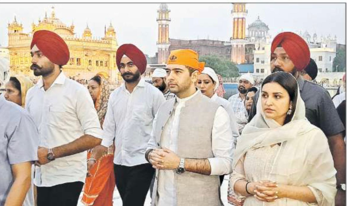 आप के नेता और राज्य सभा मेम्बर श्री राघव चड्ढा ने शादी की बाद पहली बार अपनी पत्नी परणीति चोपड़ा के साथ श्री हरिमांदिर साहिब में माथा टेक कर लिया आशिर्वाद ।