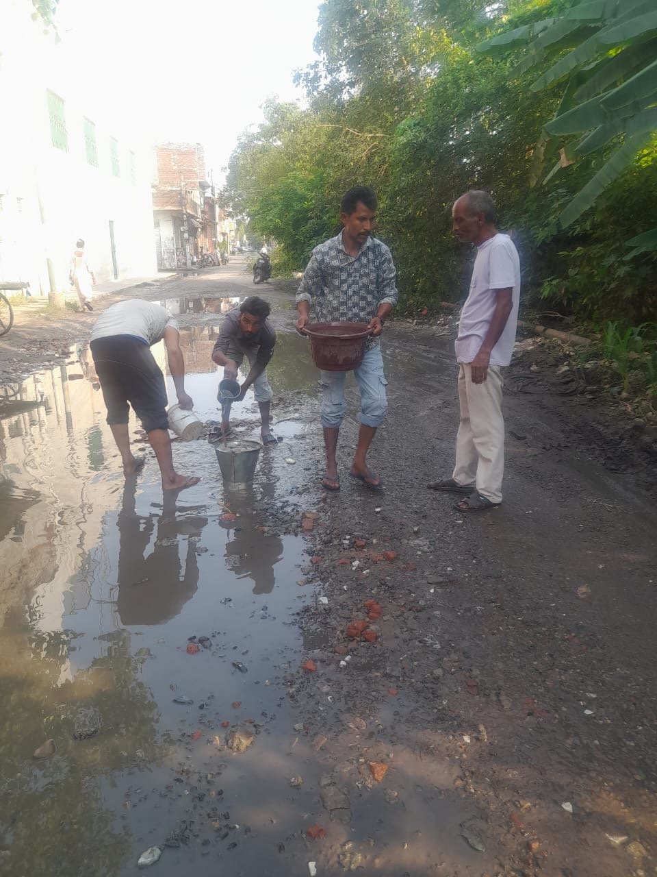 ਜਲੰਧਰ ਅੱਜ ਮਿਤੀ 7 ਜੂਨ (ਸੋਨੂੰ) :ਹਾਲੇ ਨਗਰ ਨਿਗਮ ਗਾਜੀ ਗੁਲਾ ਫਾਟਕ ਜਿਥੇ ਸੀਵਰੇਜ ਦੀ ਸਮੱਸਿਆ ਹੈ ਪਿਛਲੇ ਦੋ ਸਾਲਾਂ ਤੋਂ ਰਾਮ ਨਗਰ ਗਾਂਧੀ ਕੈਂਪ ਵੱਲੋਂ ਸ਼ੋਭਾ ਯਾਤਰਾ ਨਿਕਲਣੀ ਹੈ ਉਸ ਸੰਬੰਧ ਵਿੱਚ ਤਿਆਰੀਆਂ ਨਗਰ ਨਿਗਮ ਕੋ ਜਿਦਾ ਕਰ ਰਿਹਾ ਜਿਹੜਾ ਰੋਡ ਤੇ ਪਾਣੀ ਖੜਾ ਸੀਵਰੇਜ ਦਾ ਨਗਰ ਨਿਗਮ ਬਾਲਟੀਆਂ ਡੱਬਾ ਅਤੇ ਨਹਾਣ ਵਾਲੇ ਮੱਗਾਂ ਨਾਲ ਚੱਕ ਰਹੇ ਨੇ ਨਗਰ ਨਿਗਮ ਮੁਲਾਜ਼ਮ ਉਹਨਾਂ ਨੇ ਦੱਸਿਆ ਹੈ ਕਿ ਅਧਿਕਾਰੀਆਂ ਦਾ ਹੁਕਮ ਹੋਇਆ ਸੜਕ ਸੁਖਾਣੀ ਹੈ ਤਿੰਨ ਵਜੇ ਲੱਗੇ ਹੈ ਪੰਜ ਵਾਕੇ 10 ਮਿੰਟ ਤੇ ਕੰਮ ਬੰਦ ਕਰਤਾ ਉਹਨਾਂ ਨੇ ਕਿਹਾ ਕਿ ਜਿੰਨਾ ਪਾਣੀ ਚੱਕ ਕੇ ਦੋ ਘੰਟੇ ਦਸ ਮਿੰਟ ਚ ਨਾਲੇ ਵੱਲ ਨੂੰ ਕੀਤਾ ਹੈ ਹੈ ਉਸ ਤੋਂ ਦੁਗਣਾ ਪਾਣੀ ਰੋਡ ਤੇ ਫਿਰ ਆ ਜਾਣਾ ਜਿੱਥੇ ਕਰੋੜਾਂ ਰੁਪਏ ਦੀ ਨਗਰ ਨਿਗਮ ਕੋ ਮਸ਼ੀਨਰੀ ਹੈ ਉਥੇ ਮੁਲਾਜ਼ਮਾਂ ਨੂੰ ਇਸ ਤਰਾਂ ਪਾਣੀ ਚਕਣਾ ਪੈ ਰਿਹਾ ਹੈ ਆਉਣ ਜਾਣ ਵਾਲੇ ਲੋਕ ਜਾ ਇਲਾਕਾ ਨਿਵਾਸੀ ਦੇਖ ਕੇ ਹੈਰਾਨ ਨੇ ਪੰਜਾਬ ਵਿੱਚ ਜਲੰਧਰ ਨਗਰ ਨਿਗਮ ਸਭ ਤੋਂ ਵੱਡੀ ਹੈ ਤੇ ਉਹਨਾਂ ਕੋਲੋਂ ਕੋਈ ਉਪਕਰਨ ਨਹੀਂ ਹੈ ਪਾਣੀ ਚੱਕਣ ਦਾ ਕੀ ਹਾਲ ਗਾਜੀ ਗੁਲਾ ਫਾਟਕ ਤੇ ਸੀਵਰੇਜ ਪਾਣੀ ਦਾ ਖੜੇ ਹੈ ।