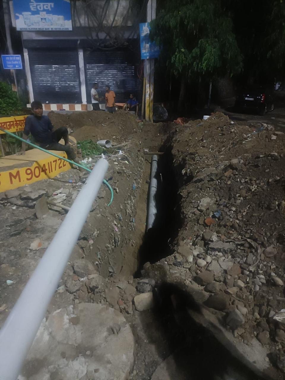 ਦੁਕਾਨਦਾਰ ਵੱਲੋਂ ਸੜਕ ਨੂੰ ਤੋੜ ਕੇ ਪਾਈ ਪਾਈ ਜਾ ਰਹੀ ਹੈ ਬਿਨਾਂ ਮਨਜ਼ੂਰੀ ਤੋਂ ਪਿੱਛੇ ਜਿਹੀ ਮਾਸਟਰ ਗੁਰਬੰਤਾ ਸਿੰਘ ਨਵੀ ਬਣਾਈ ਗਈ ਸੜਕ ਸੀ ।