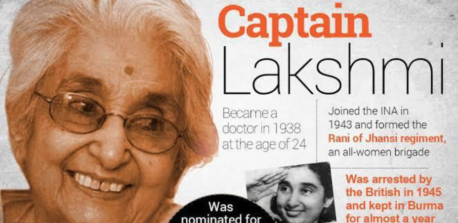 *Lakshmi Sahgal,* passed away on 23 July 2012, was a revolutionary of the Indian independence movement, an officer of the Indian National Army, and the Minister of Women's Affairs in the Azad Hind government. Sahgal is commonly referred to in India as _"Captain Lakshmi",_ a reference to her rank when taken prisoner in Burma during the Second World War.