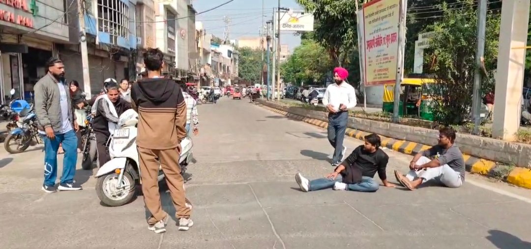 जालंधर के इस चौंक में नगर निगम कर्मचारियों का प्रदर्शन
