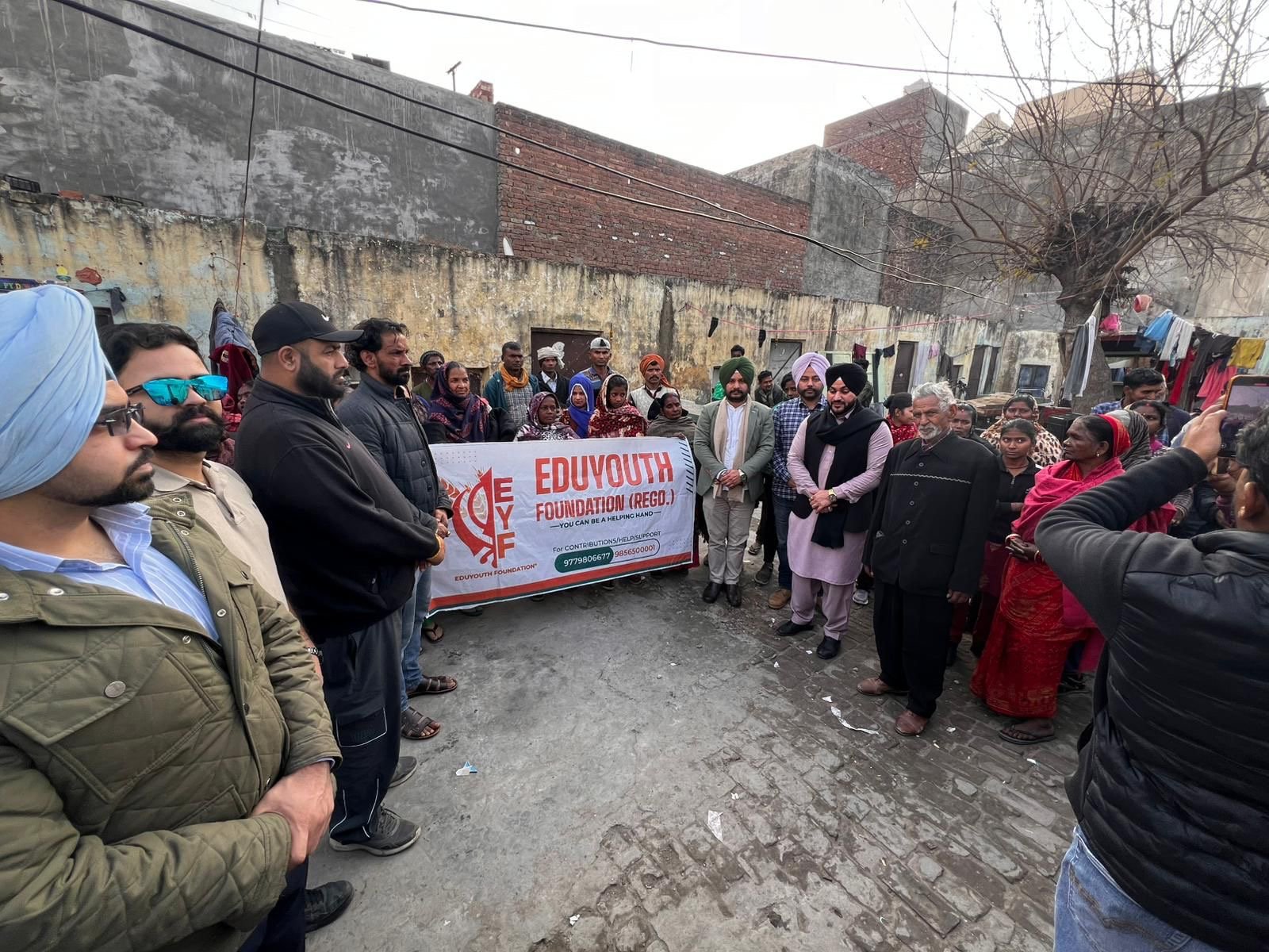Jalandhar 19 January (Sonu) : Jalandhar based NGO Eduyouth Foundation (Regd.) conducted winter donation drive at Shri Guru Ravidass Mandir, Bootan Pind, Jalandhar today. More than 100 residents were provided with warm blankets and more than 50 people were given bed sheets. The management committee of mandir provided full assistance and cooperation to NGO’s team. Prof. Kanwar Sartaj Singh (President) said our NGO is committed to serve society in best possible manner. We conduct winter donation drive every year at various locations. We are coming up with many more activities including free medical check up camps in near future. Surinder Klair, Harmanpreet Singh, Davinder Lubana, Prabh Dhillon, Gurinderjit Singh, Ripudaman Singh, Monu Sidhu, Tarun Bhagat, Abhishek Sabharwal, Jaswinder Kumar and others were present.