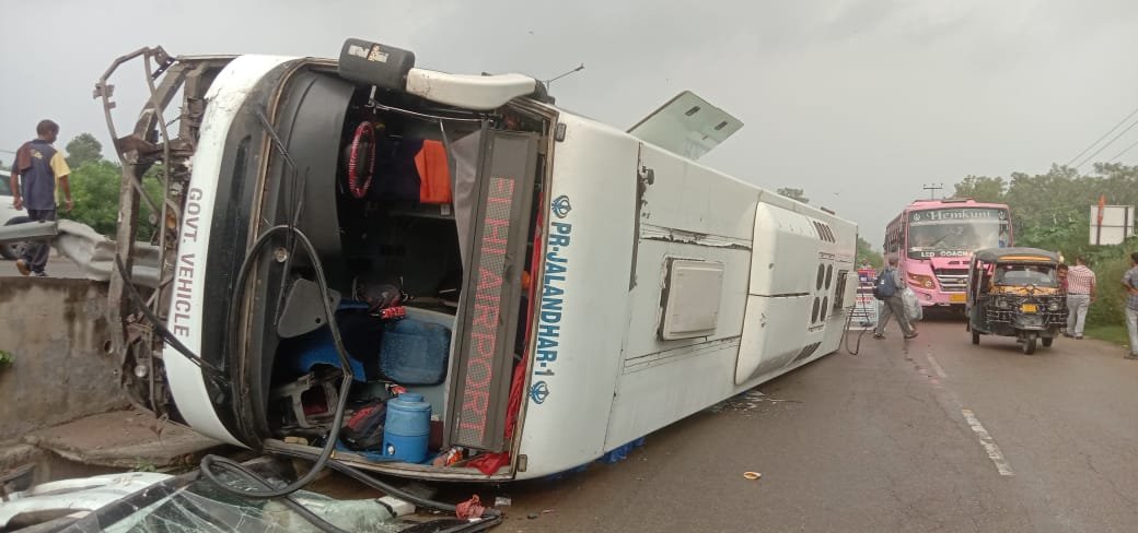 ਲਵਦੀਪ ਬੈਂਸ ( ਪਤਾਰਾ/ਜਲੰਧਰ ਕੈਂਟ ) :- ਦਿੱਲੀ ਤੋਂ ਜਲੰਧਰ ਆ ਰਹੀ ਪੰਜਾਬ ਰੋਡਵੇਜ ਦੀ ਬੱਸ ਰਾਮਾ ਮੰਡੀ ਫਲਾਈਓਵਰ ਨਜ਼ਦੀਕ ਪਲਟ ਗਈ । ਹਾਦਸਾ ਉਸ ਸਮੇਂ ਵਾਪਰਿਆ ਜਦ ਪੰਜਾਬ ਰੋਡਵੇਜ ਦੀ ਬੱਸ ਦਿੱਲੀ ਏਅਰਪੋਰਟ ਤੋਂ ਸਵਾਰੀਆਂ ਲੈ ਕੇ ਜਲੰਧਰ ਬੱਸ ਸਟੈਂਡ ਵੱਲ ਜਾ ਰਹੀ ਸੀ ਤਾਂ ਰਾਮਾ ਮੰਡੀ ਫਲਾਈਓਵਰ ਚੜ੍ਹਦੇ ਹੋਏ ਕਾਰ ਦੀ ਫੇਟ ਵੱਜਣ ਨਾਲ ਬੱਸ ਪਲਟ ਗਈ ।