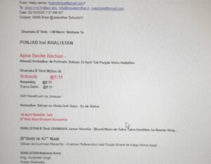 खालिस्तान के नाम से भेजा गया ई-मेल