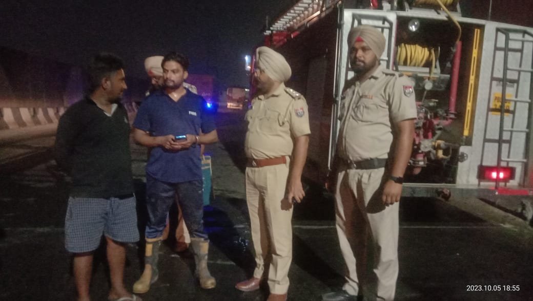 ਪੀ.ਏ.ਪੀ ਫਲਾਈਓਵਰ 'ਤੇ ਟਿੱਪਰ ਨੂੰ ਲੱਗੀ ਅੱਗ, ਜਾਨੀ ਨੁਕਸਾਨ ਤੋਂ ਹੋਇਆ ਬਚਾਅ