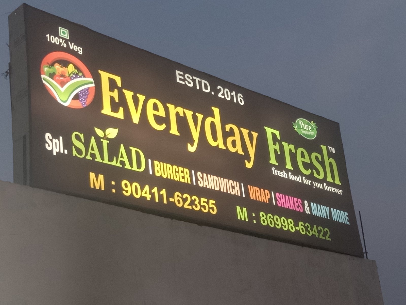 Dear one's kindly order here for healthy n fresh salads , vegetarian sandwich, vegetarian burgers, we serve only fresh n vegetarian snacks over here for your health n wellness, numbers provided in picture n we are also on zomato, swiggy with regards