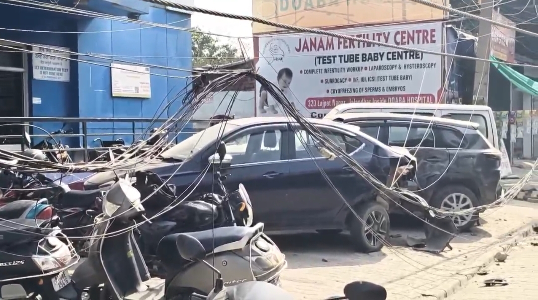 अस्पताल की पार्किंग में खड़ी गाड़ियों को तेज रफ्तार कार ने मारी टक्कर
